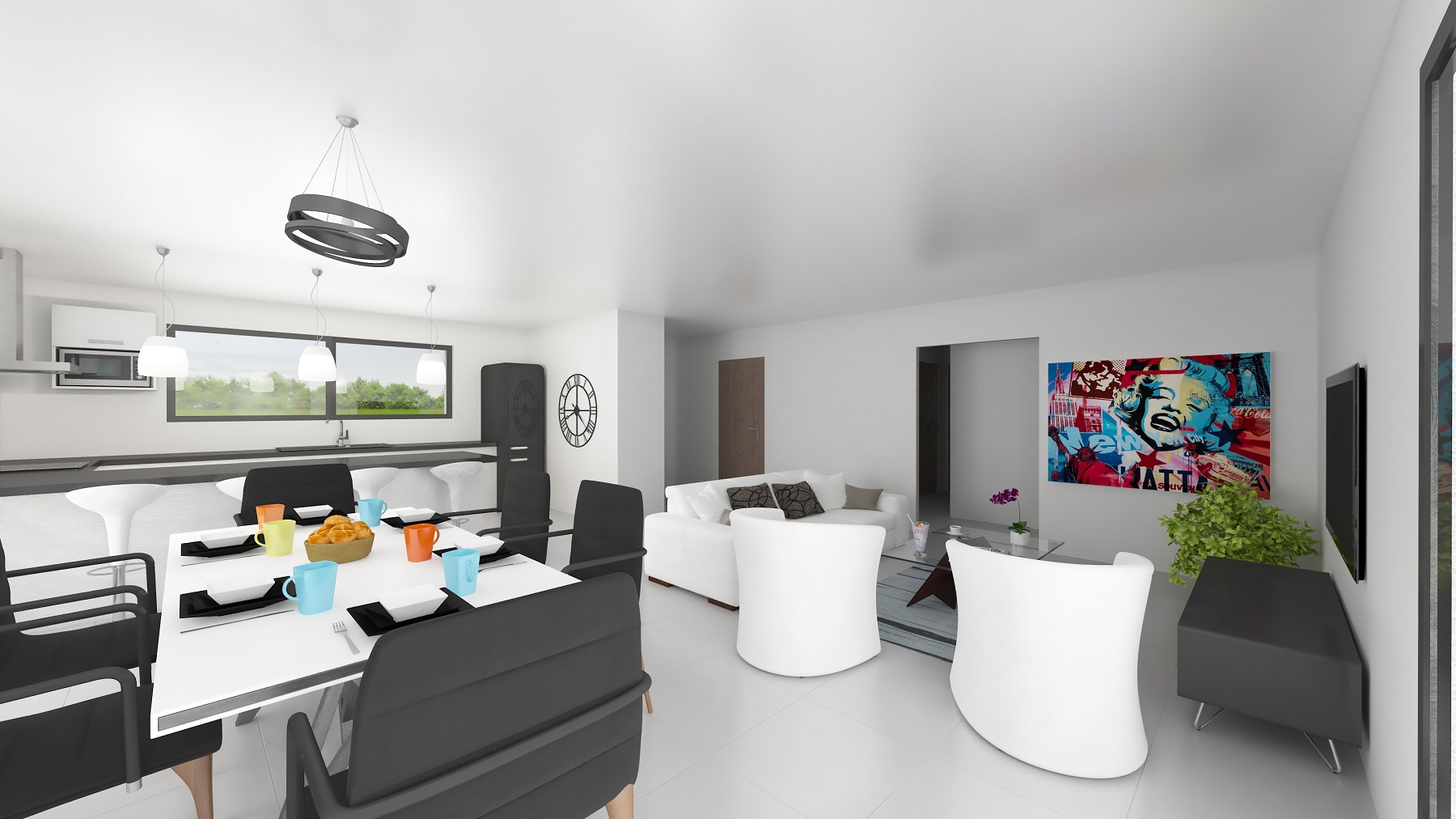Plain pied moderne, toiture type terrasse, 3 chambres dont 1 suite parentale pouvant plaire à une large clientèle.